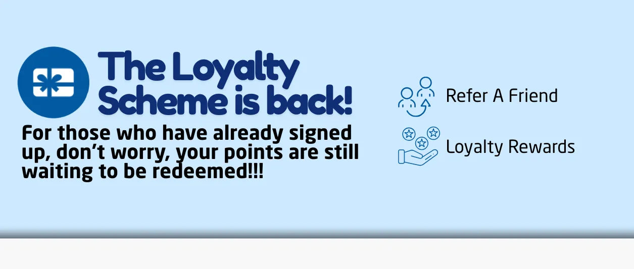 Sign up to our loyalty scheme to earn points and redeem for huge discounts!